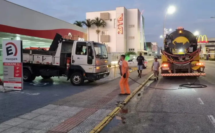A escolha do horário amplia a eficiência do uso da água e reduz riscos a pedestres. A operação segue parâmetros técnicos de limpeza urbana.
