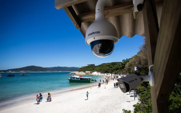 A Ilha do Campeche recebe sistema de videomonitoramento para combater desembarques irregulares, combinando tecnologia com fiscalização presencial de agentes da Fundação Municipal do Meio Ambiente e Guarda Municipal durante a temporada de verão em Florianópolis.