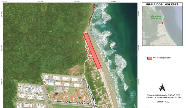 A liberação de cães nas praias ocorre apenas no período da manhã, até 9h, e no fim da tarde, a partir das 17h. As áreas autorizadas ficam nas praias do Praia do Campeche e Praia dos Ingleses, com trechos sinalizados e previamente delimitados.
