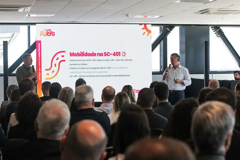 O transporte coletivo será incentivado com o programa “Domingo na Faixa”, oferecendo passe livre em oito domingos consecutivos. Uma linha direta entre o TISAN e o TICEN utilizará a faixa exclusiva da SC-401. O pagamento em dinheiro dentro dos ônibus será substituído pelo Catraca PIX, e um novo modelo de Cartão Turista, mais descentralizado, será lançado. “É para promover a cidade e ampliar o número de visitantes usando o serviço”, justificou o prefeito.
