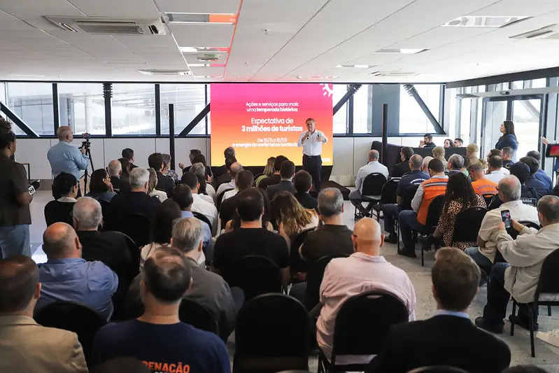 Em evento realizado no Aeroporto de Florianópolis, o prefeito Topázio Neto detalhou a Operação Verão, estratégia da administração municipal para o período de 15 de novembro de 2025 a 15 de maio de 2026. A iniciativa foi elaborada para gerenciar a expectativa de chegada de três milhões de visitantes, um fluxo que expande significativamente a população local. “Você põe 500 mil pessoas a mais por mês, uma cidade praticamente dobra a capacidade”, observou o prefeito, enfatizando os impactos na mobilidade, saúde, coleta de lixo e segurança. O plano articula ações conjuntas entre diversas secretarias e entidades parceiras para oferecer uma temporada com serviços ampliados e diversas inovações.